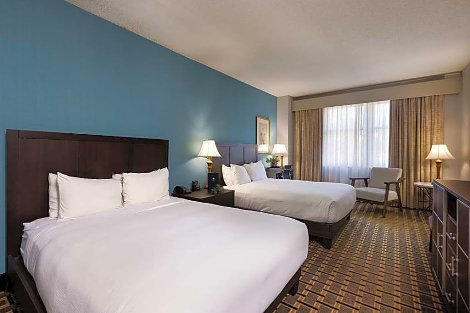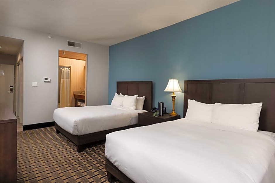 This mobility accessible standard room features two queen-sized beds, and a roll-in shower. Any corresponding photo may not reflect the specific accessible room type or room feature.